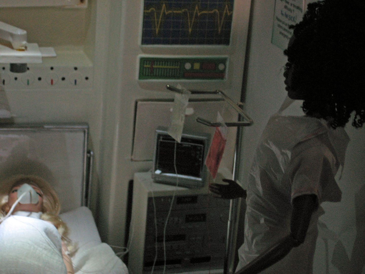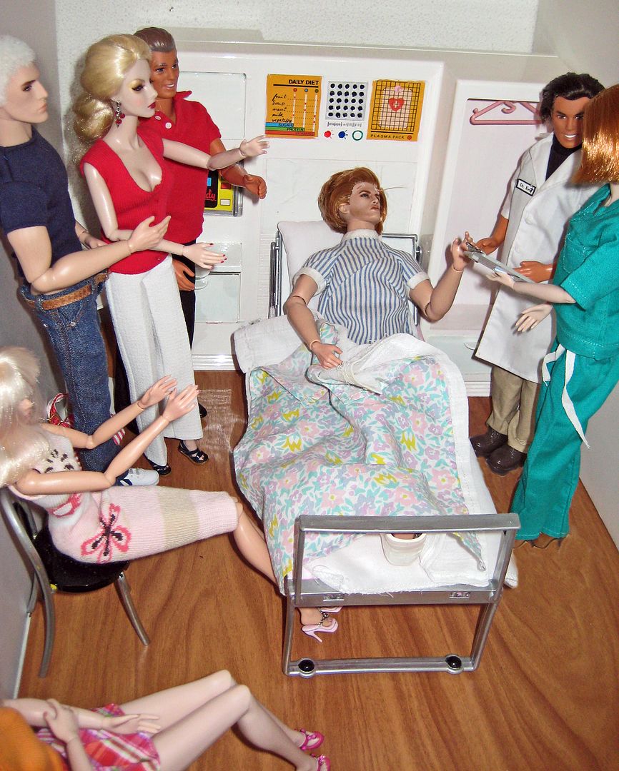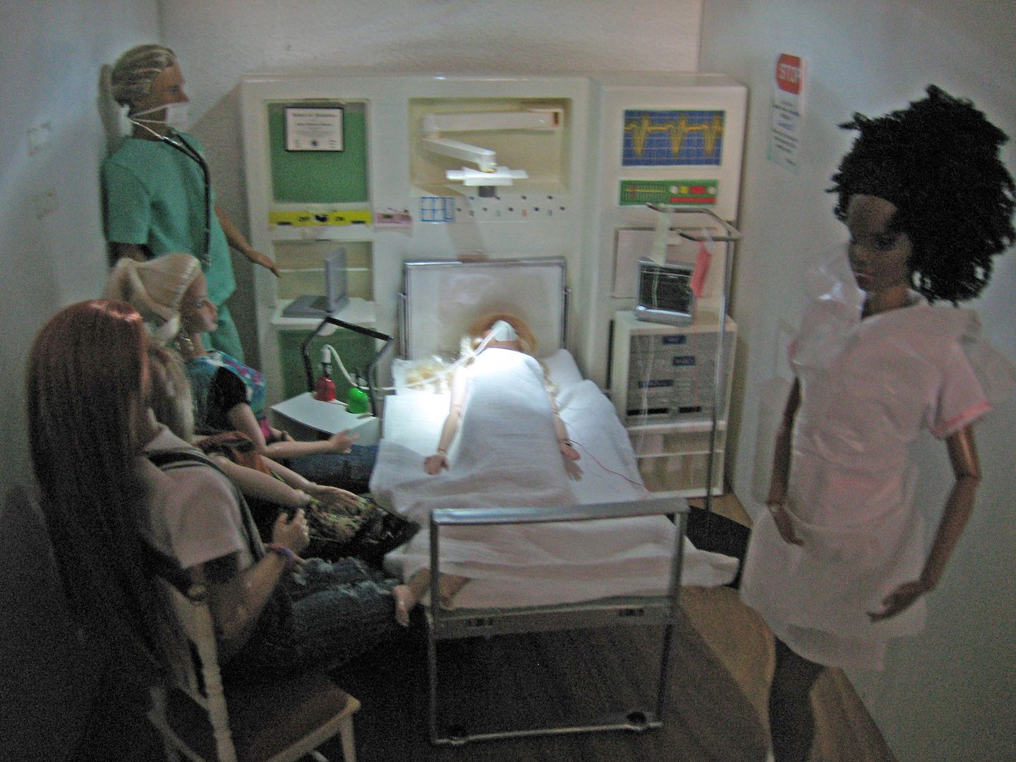 (and a fare amount of cursing) manages to get him along side her bed.(OK, so this is waaay to many people for ICU lucky they arrived as the nurses are changing shift!)