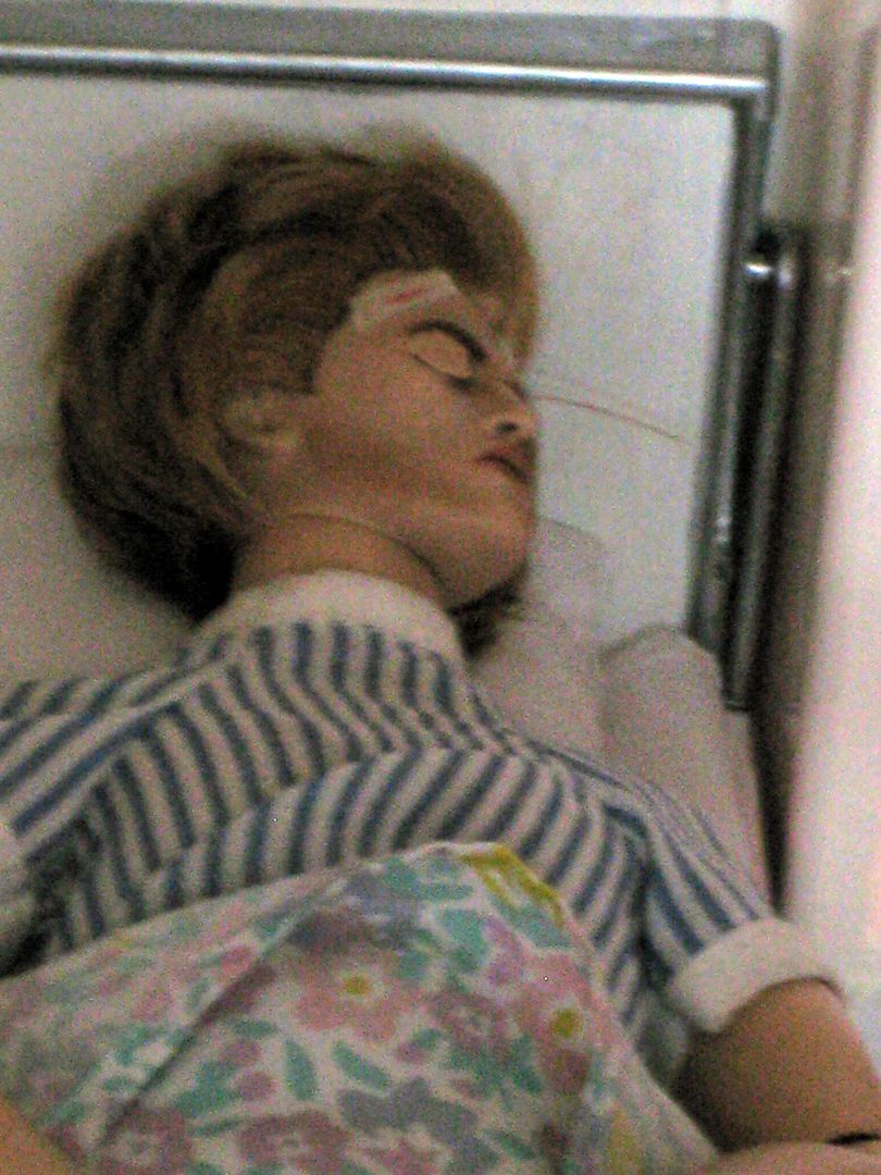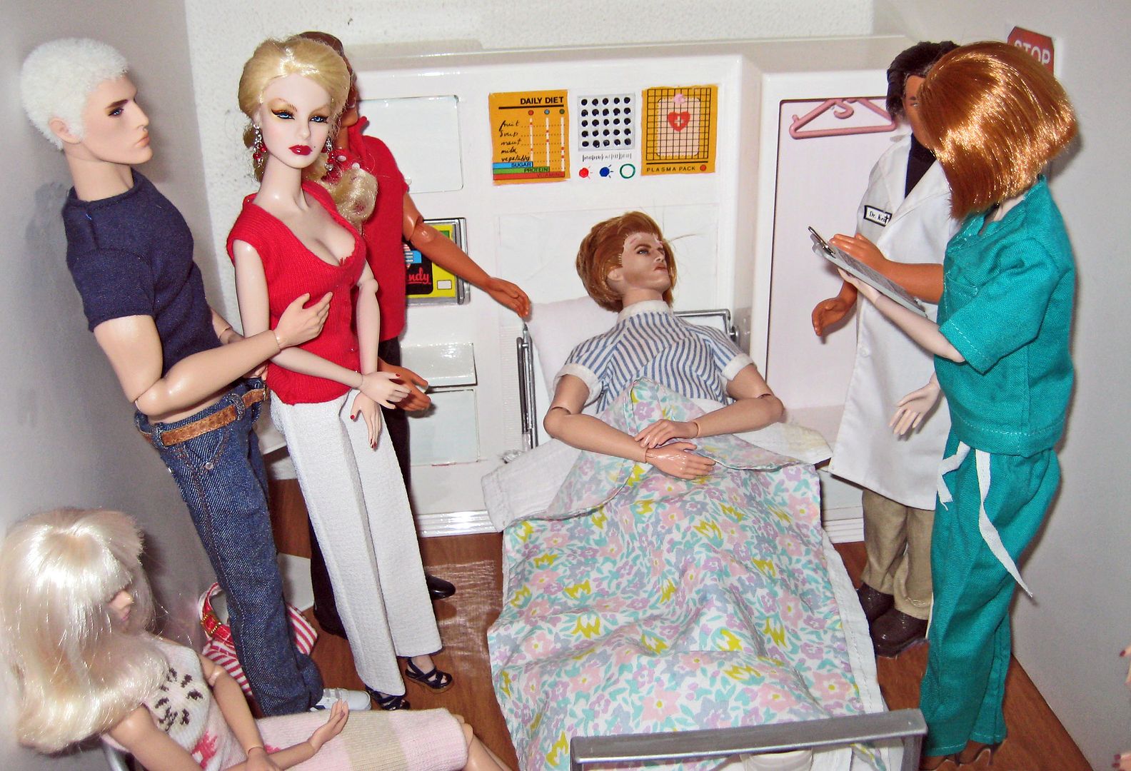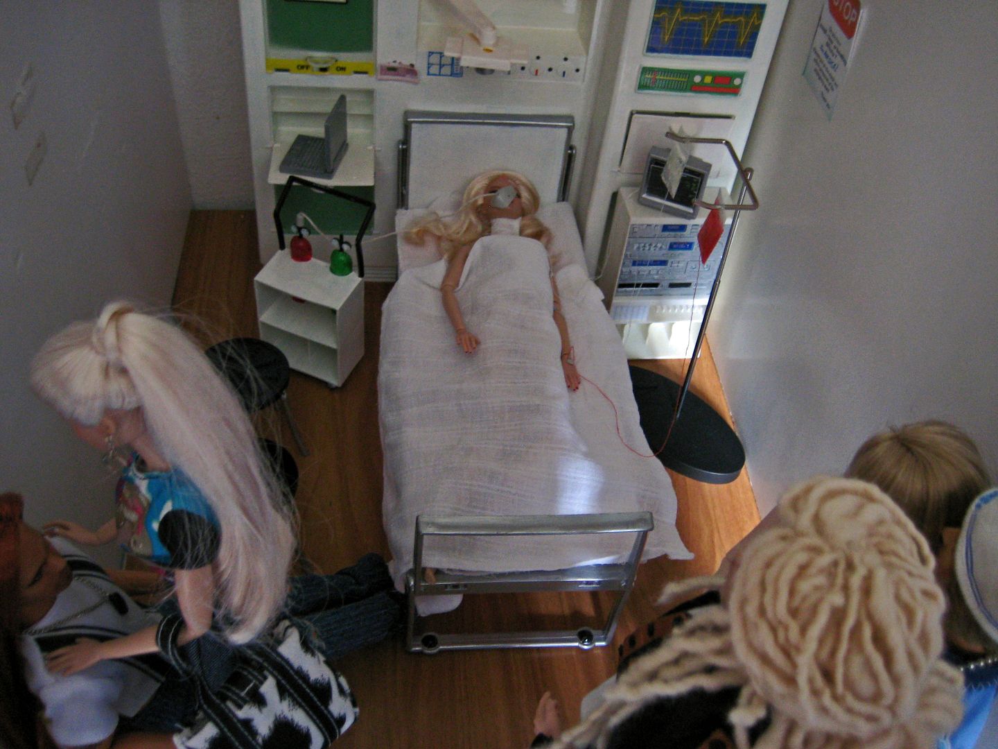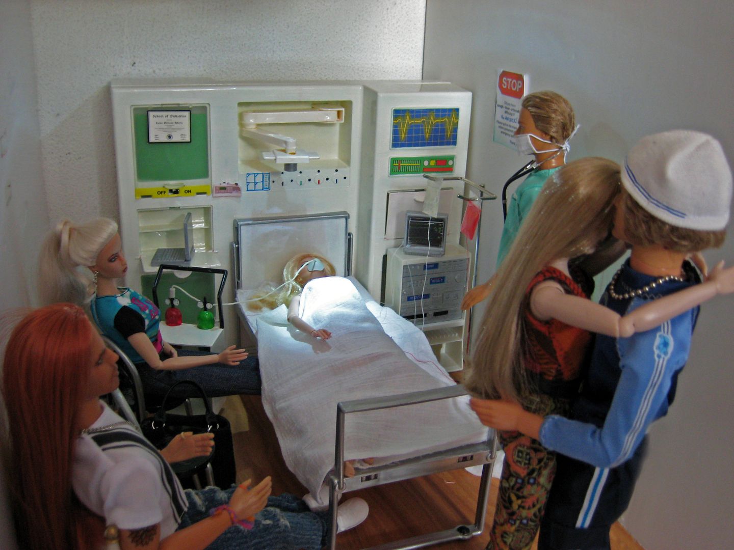 (and a fare amount of cursing) manages to get him along side her bed.(OK, so this is waaay to many people for ICU lucky they arrived as the nurses are changing shift!)