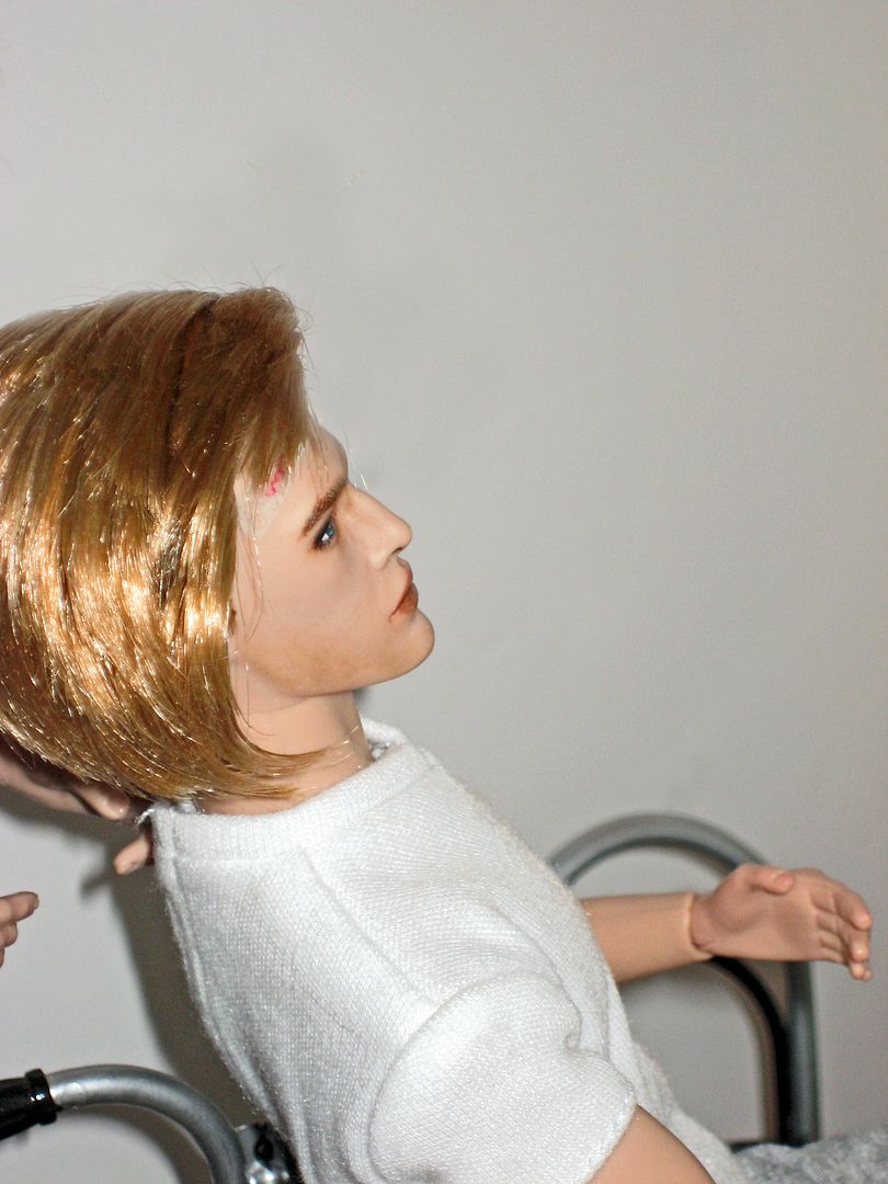 "Yes, well this has caused us a few issues and a.... well she has had to have a partial hysterectomy. The other bullet is lodged at the base of her skull and we could not remove it! I'm sorry it's now a waiting game! We will keep her sedated and in a coma for the time being"