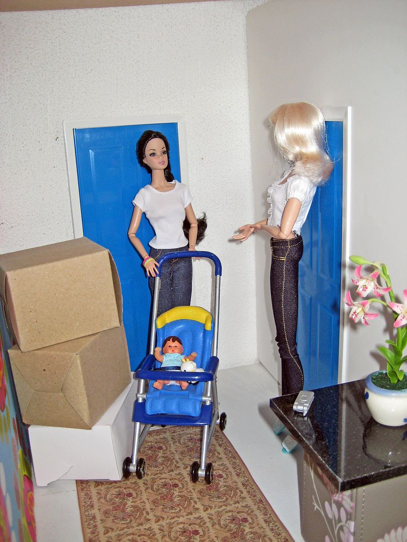 "It's fine, thank you! I'm just a little... tired!" Giselle kisses Abhay and hands him back to Madeline who taking him heads to the kitchen to prepare his lunch.