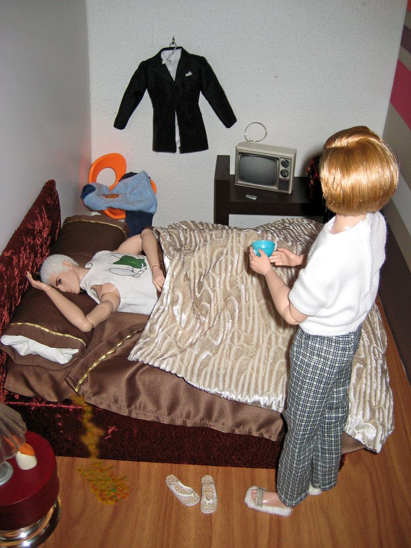 Iver looked on worriedly as Rumi sits nursing a very poorly Marc. "I think we should call the doctor?"